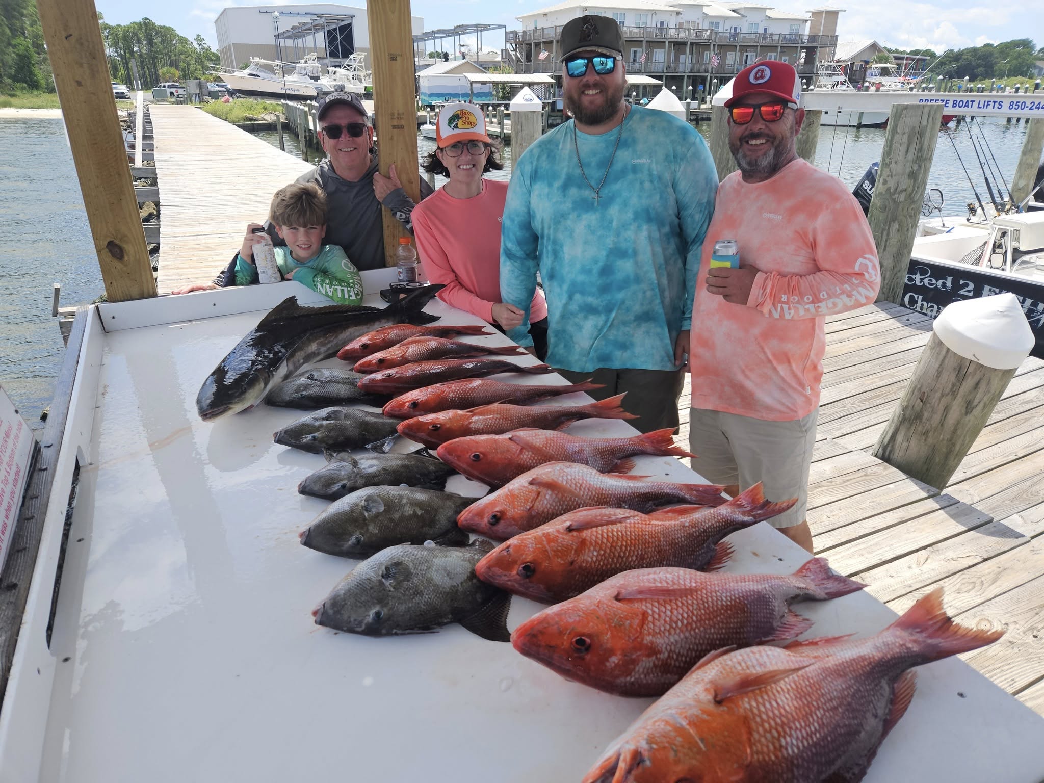 Fishing Charter Photo Gallery – Gulf Shores & Orange Beach Adventures Real Moments from the Water with Black Flag Company Step aboard with Black Flag Company and get a glimpse of the action through our fishing charter gallery. These photos capture real moments from our trips out of Gulf Shores and Orange Beach—smiling anglers, fresh catches, and the unbeatable Gulf Coast views that make every outing special. From early morning inshore runs to deep sea battles with red snapper and king mackerel, every image tells the story of a trip worth taking.